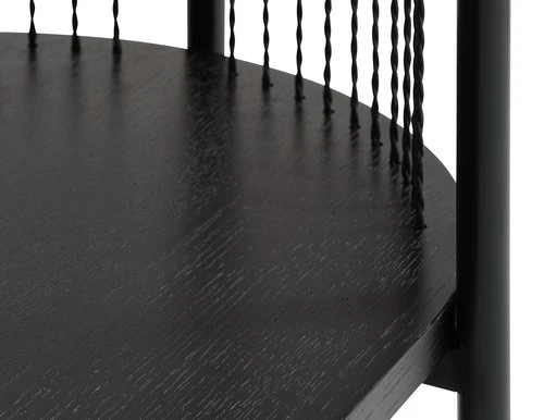 Cadre et pieds : acier. Étagères : MDF mélaminé, placage chêne. Côtés : papier. l124 x H80 x P44 cm