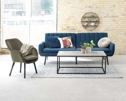 Structure : contreplaqué. Piètement : hévéa vernis noir. Rembourrage : 100% polyuréthane (28 kg/m³). Revêtement : 100% polyester (270 g/m²). 3 places. Le canapé se convertit facilement en couchage 114×190 cm, l210 x H85 x P100 cm