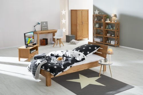 MARSTRAND Ø110 Table Chêne + 4 ADSLEV Chaises Velours Gris