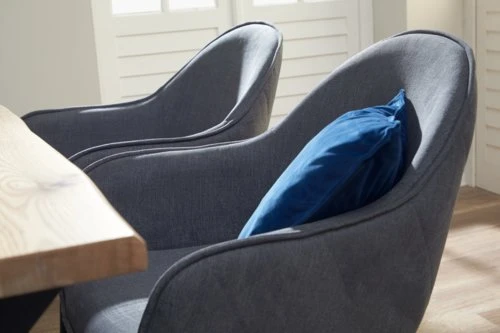 Structure : contreplaqué. Garnissage : mousse polyuréthane (28/18/24 kg/m³). Revêtement : polyester. Pieds : acier. l59 x H85 x P65 cm