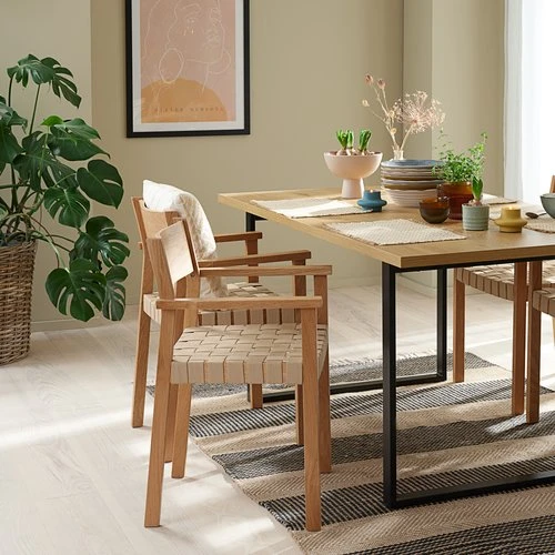 | Matériaux | Assise: Polyester, Chêne massif, Dossier: Placage chêneLe placage de chêne est constitué de fines couches de bois massif collées sur un panneau de particules ou un panneau MDF. Il offre l'aspect authentique du bois naturel massif., Contreplaqué, Accoudoir: Chêne massif, Pied: Chêne massif |