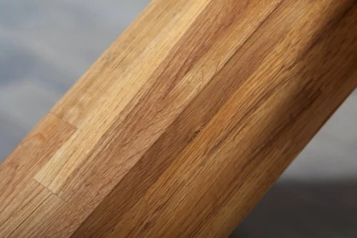 Plateau : verre trempé. Piètement : chêne massif, acier. Finition huilée. l90 x L160 x H75 cm