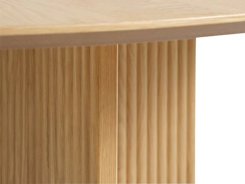 En MDF, placage chêne. Pieds : MDF, placage chêne, panneau de particules, chêne massif. Vernis transparent. Ø130 x H75 cm