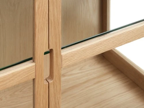 | Portes de vitrine (verre) | Chêne massif, Verre trempé |