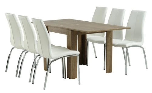VEDDE L80/160 Table Chêne + 4 HAVNDAL Chaises Blanc